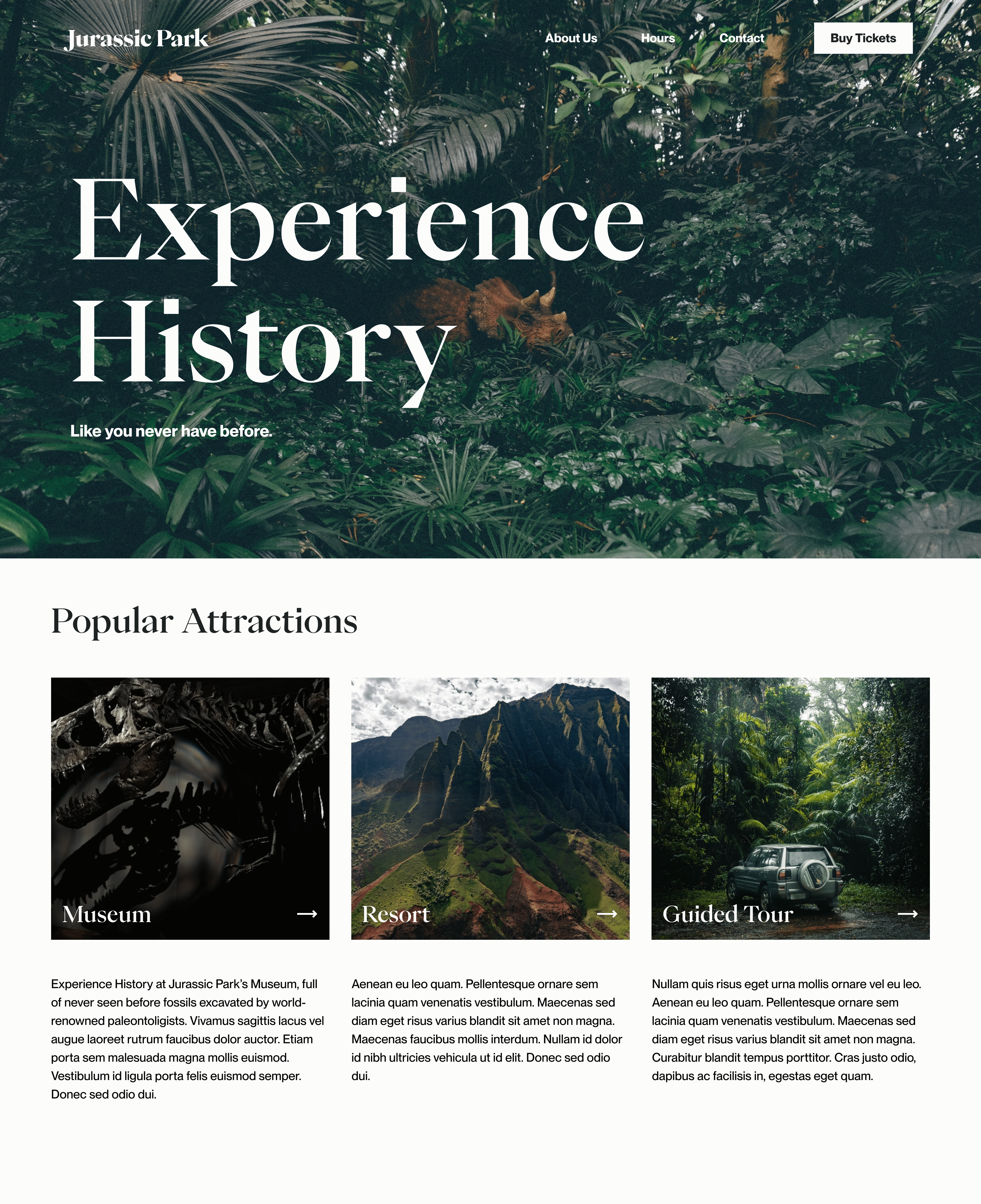 What would a landing page for Jurassic Park look like if it was real?
